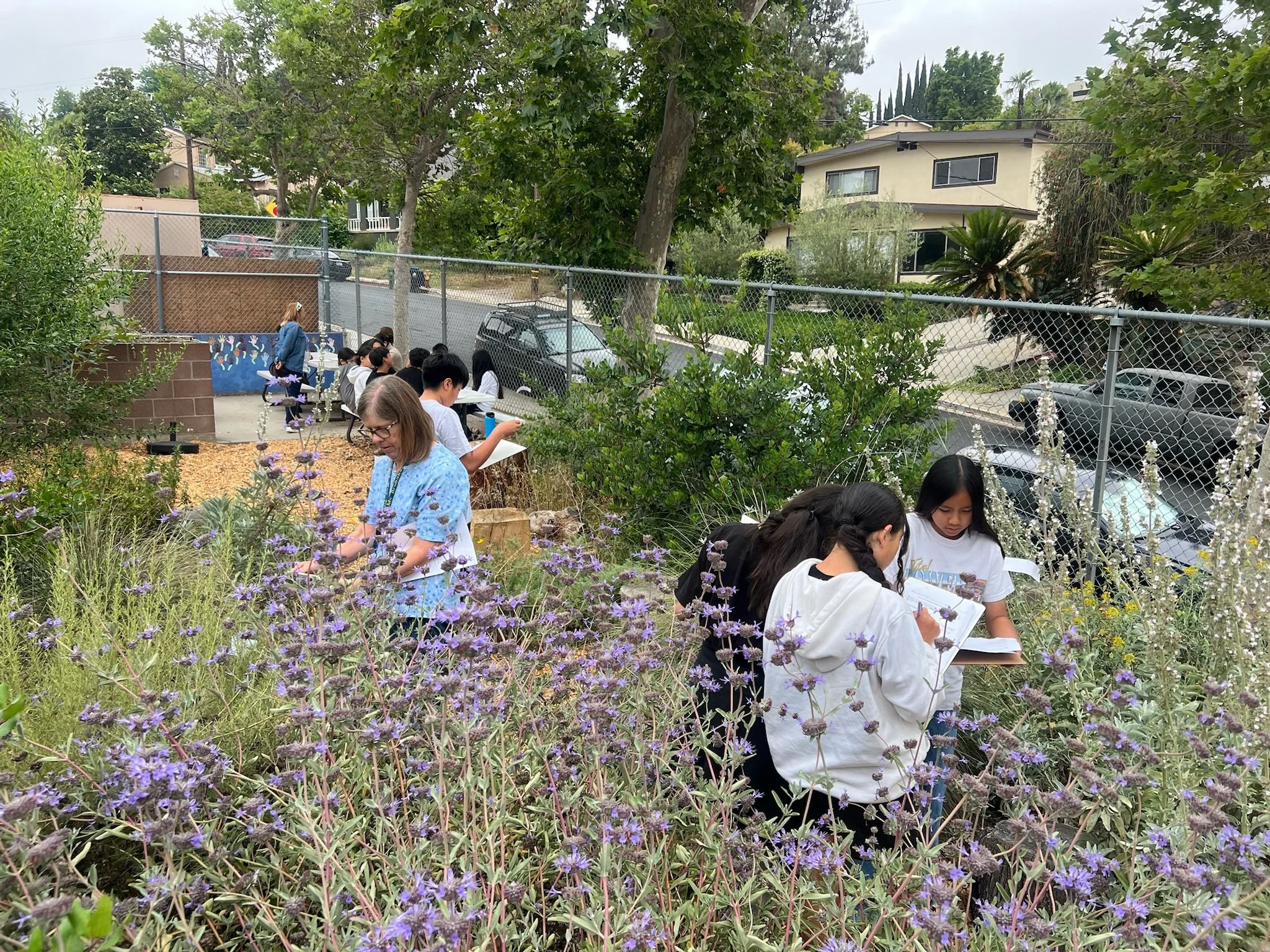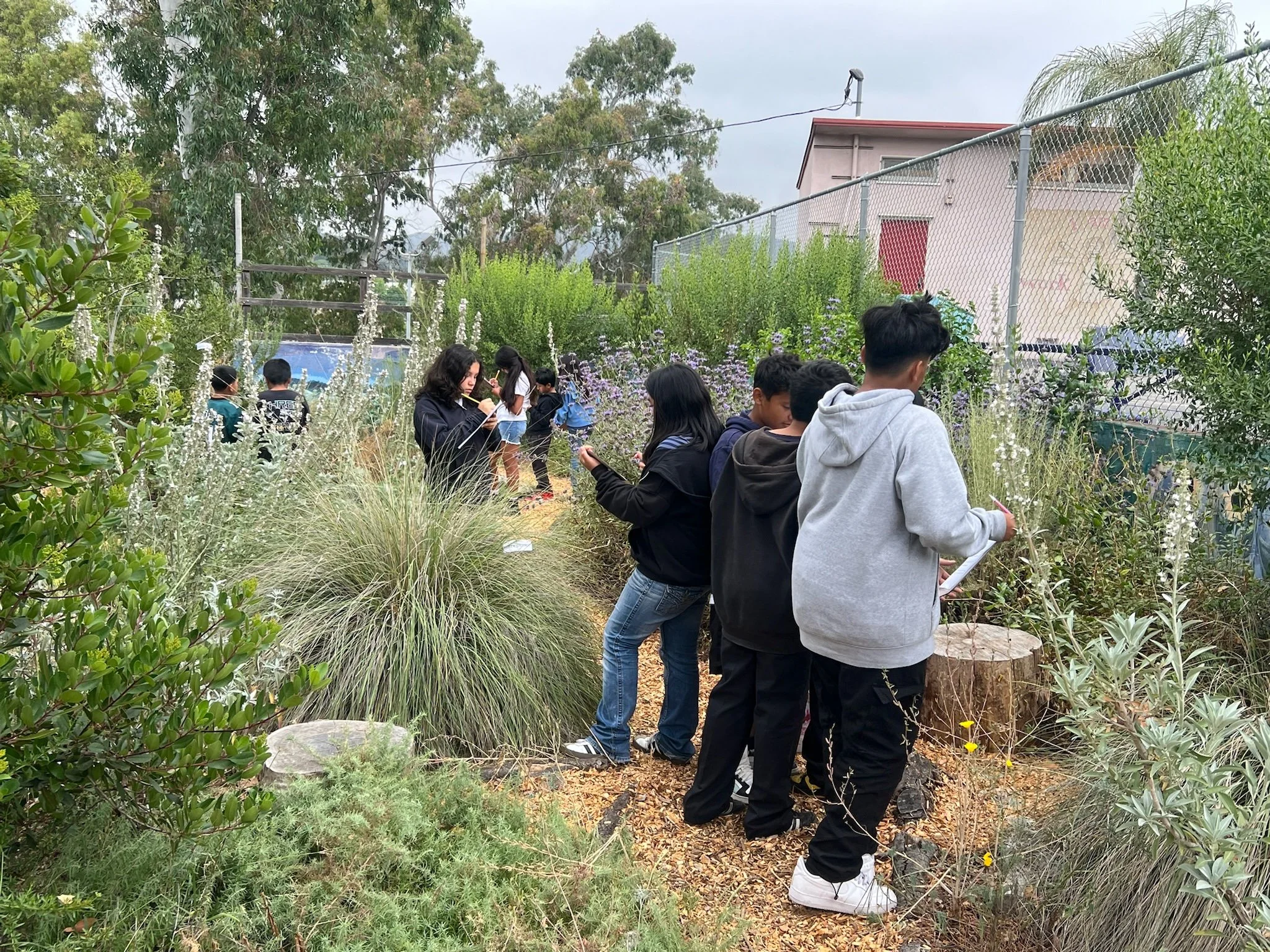 Added to the keystone species is a rich assortment of Salvia, mallow, Encelia and essential ground covers like Epilobium canum, Stipa, and native wildflowers. It’s a tight squeeze for a class of 27 kids, but with seating areas and some dedicated footpaths, it’s able to double as an educational space and rich habitat.